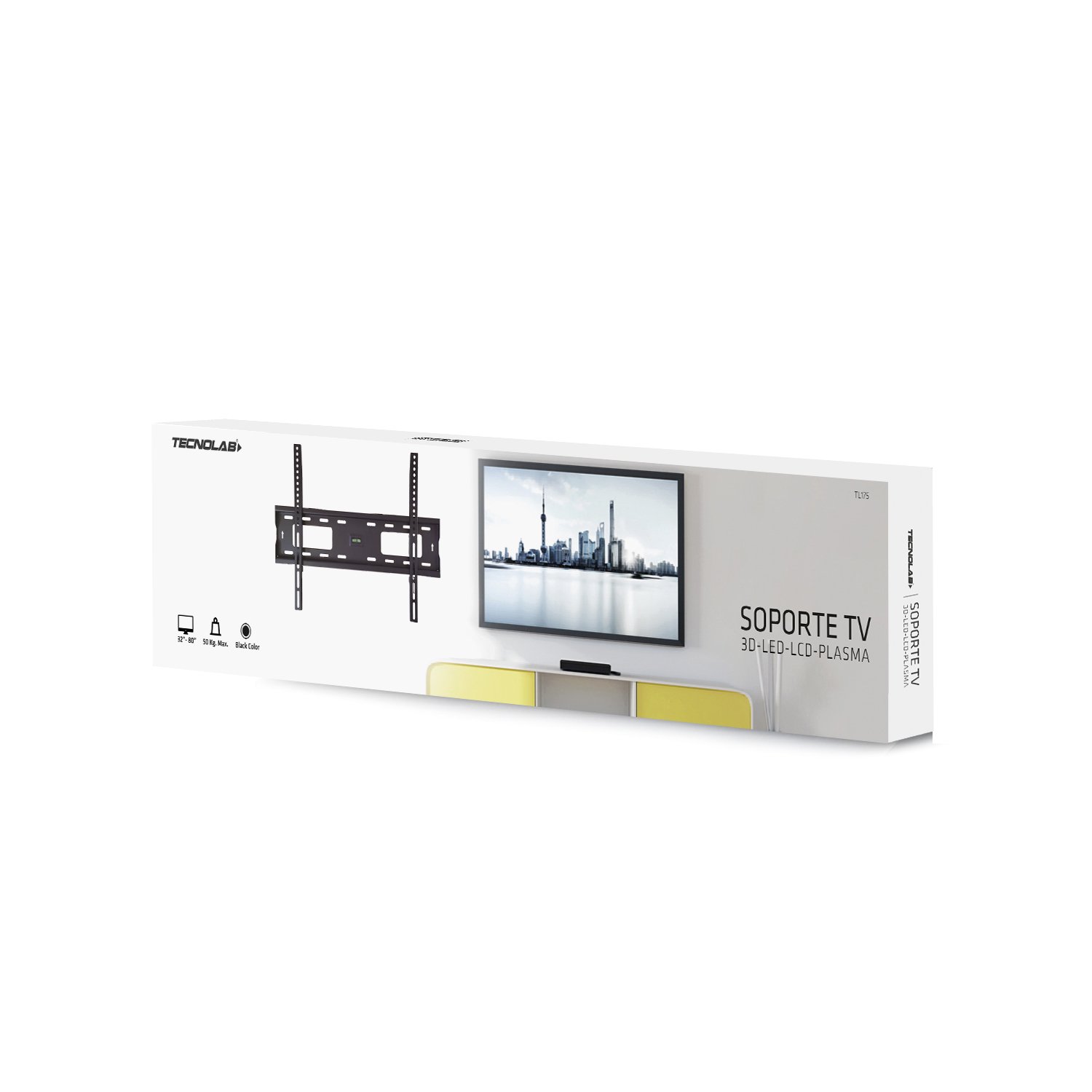Optimiza tu espacio y disfruta de la mejor experiencia visual con este soporte de TV inclinable de TecnoLab. Fabricado en acero resistente, es ideal para televisores de 32 a 80 pulgadas.