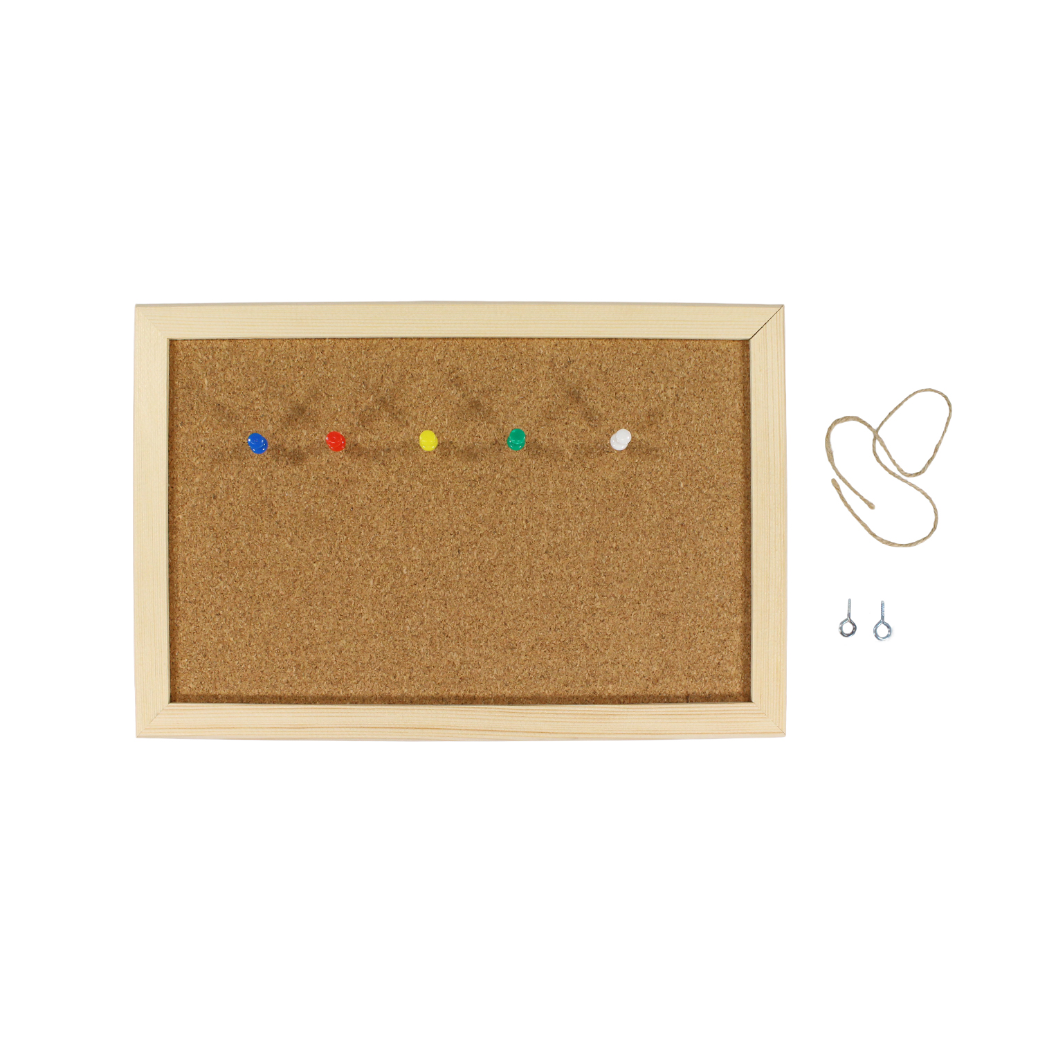 TABLERO DE CORCHO 20X30 CM – INCLUYE COLGADOR Y FIJADORES DE NOTAS
