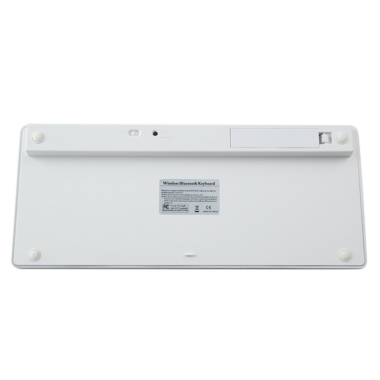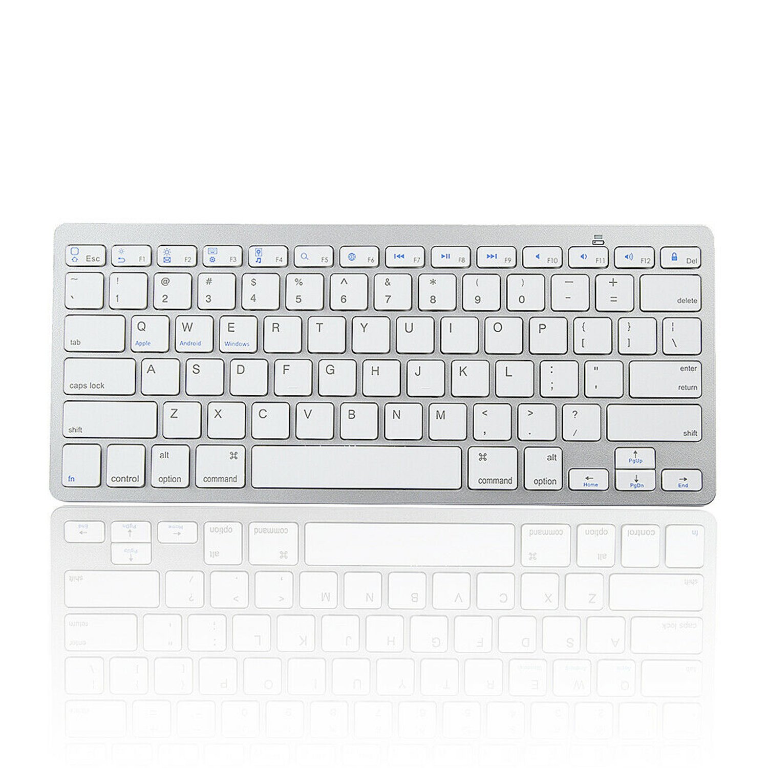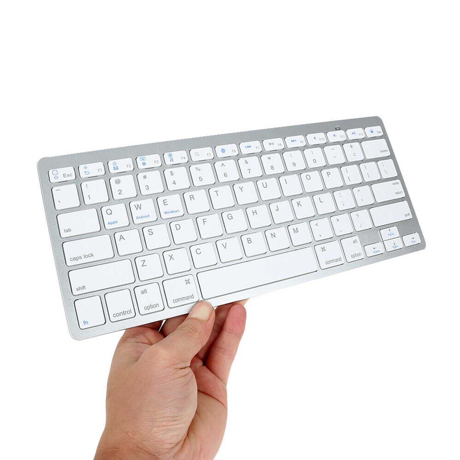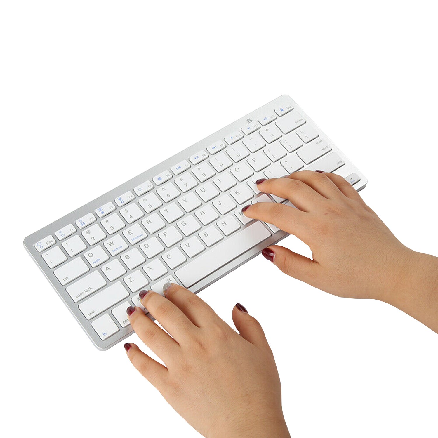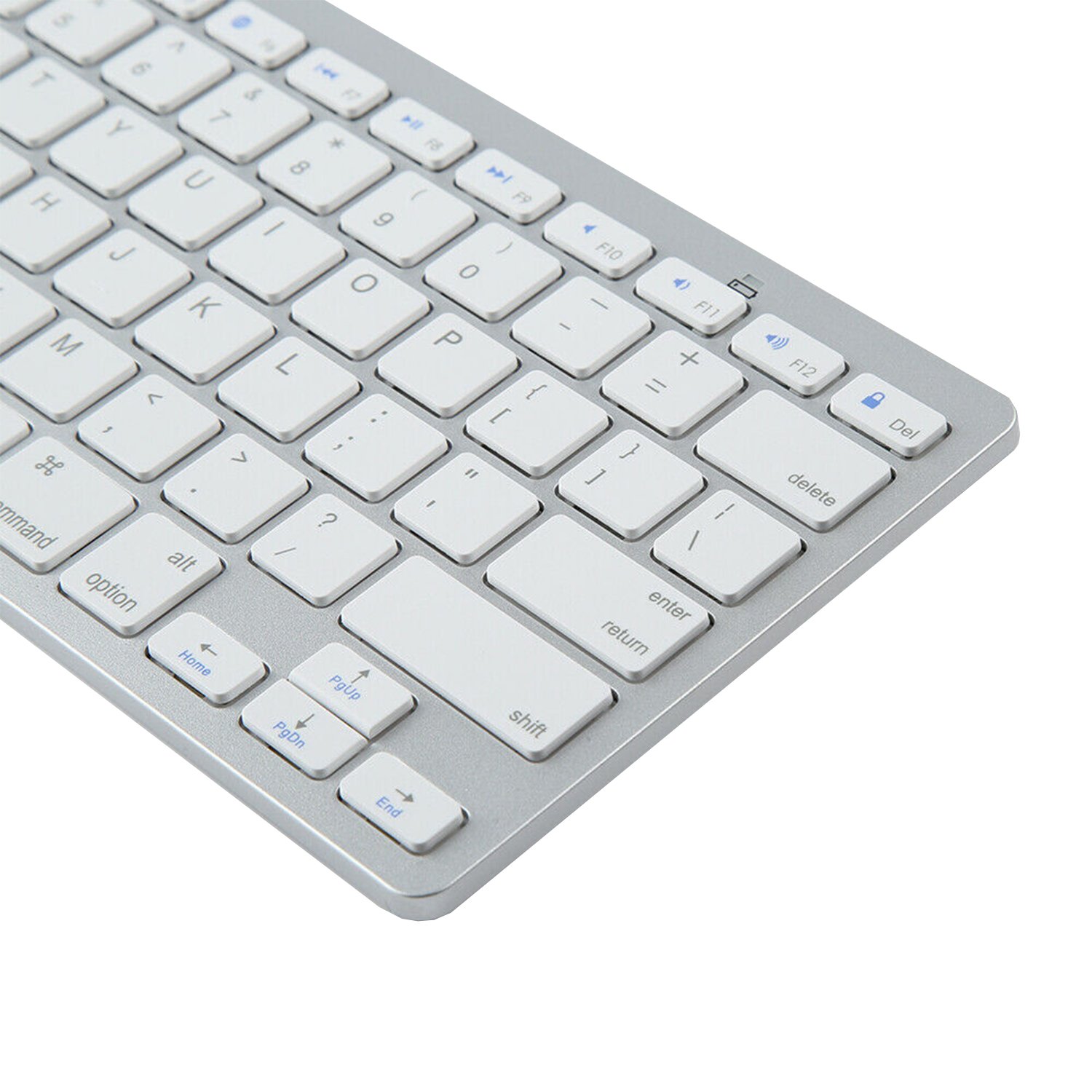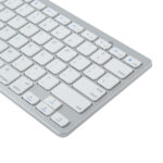 Teclado inalámbrico bluetooth ultra slim, con distancia señal de 10 metros y requiere 2 pilas AAA.