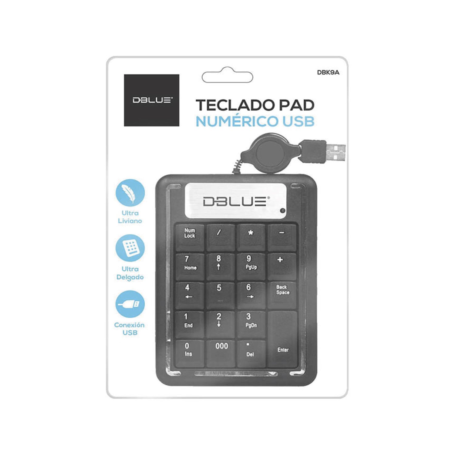 TECLADO DBLUE NUMERICO USB, DISEÑO ULTRA SLIM, PORTATIL, COLOR BLACK-SILVER.
