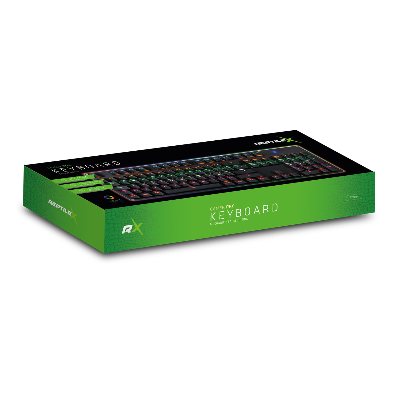 TECLADO REPTILE X MECANICO, RETROILUMINACION MULTI-COLOR, 104 TECLAS, PUERTO USB 2.0, BASE DE ALUMINIO.
