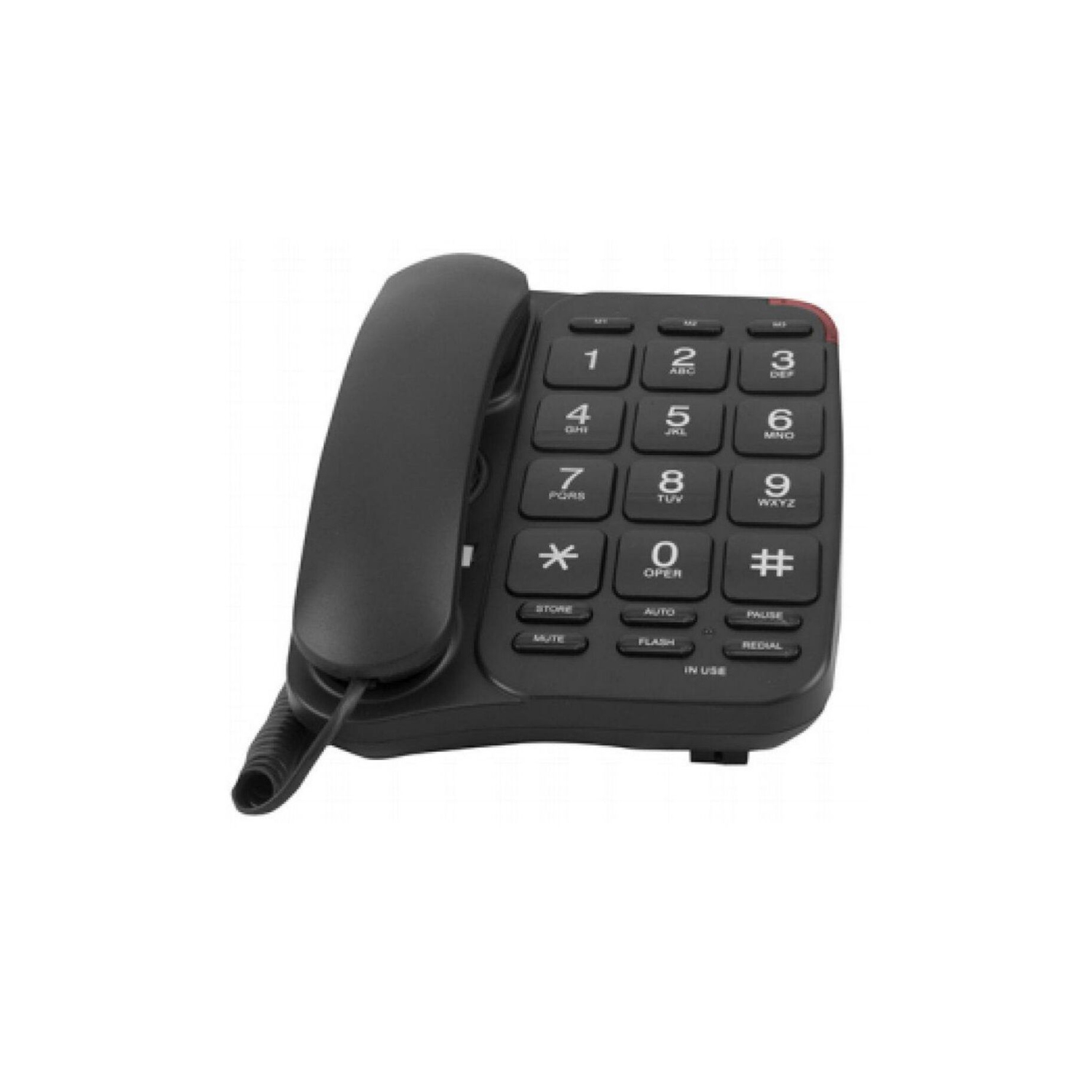 TELEFONO TECNOLAB DE SOBREMESA, 3 TECLAS RAPIDAS, MEMORIA, INDICADOR LUMINOSO, FUNCIONES DE PAUSA Y SILENCIO. BLACK