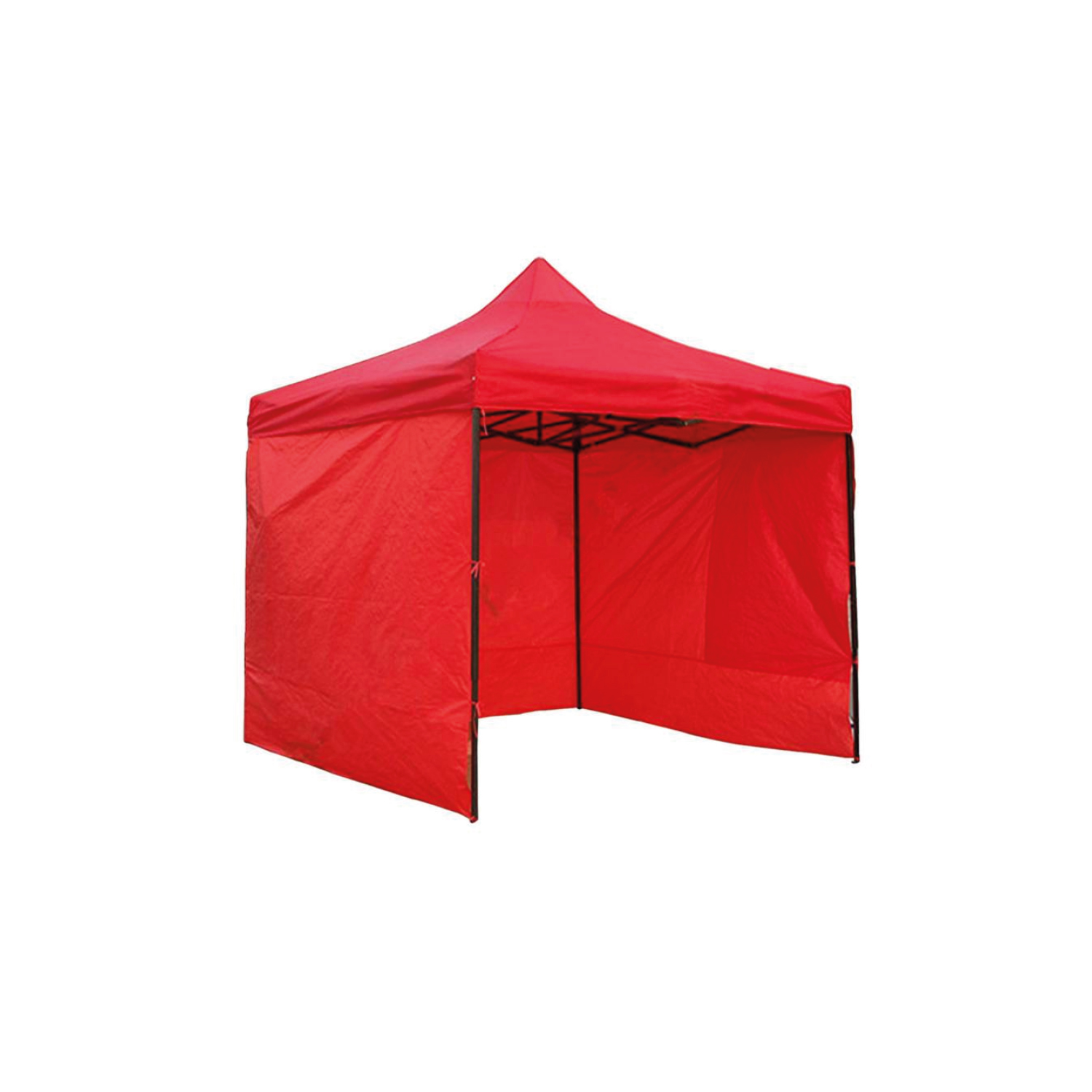 Toldo metálico plegable de 3×3 metros, fácil de armar y desarmar. ideal para jardín, ferias, etc. red, fabricado con tubos metálicos y tela oxford de 420D. peso 15 kgrs, altura regulable entre 1,5M y 2,1M.