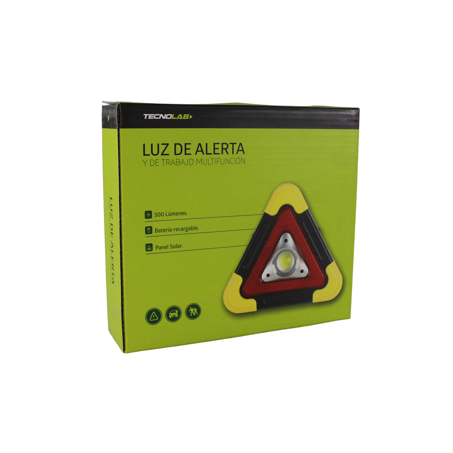 TRIANGULO DE EMERGENCIA CON LUZ LED PARA AUTOMOVILES MULTIFUNCION TECNOLAB, BATERIA RECARGABLE, PANEL DE CARGA SOLAR, PILAS AA X3, ENTRADA/SALIDA USB-MICRO USB.
