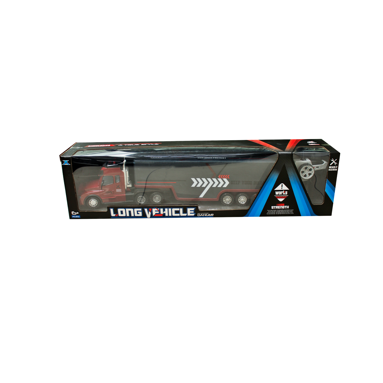 Camión con remolque de 60 cm, control remoto 2.4 GHz, varios compartimentos para pilas AA (no incl.), piezas pequeñas