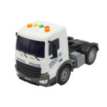 VEHICULO A FRICCION CAMION REMOLQUE CON AUTO POLICIA DE RUEDA LIBRE Y HELICOPTERO ESCALA 1:18