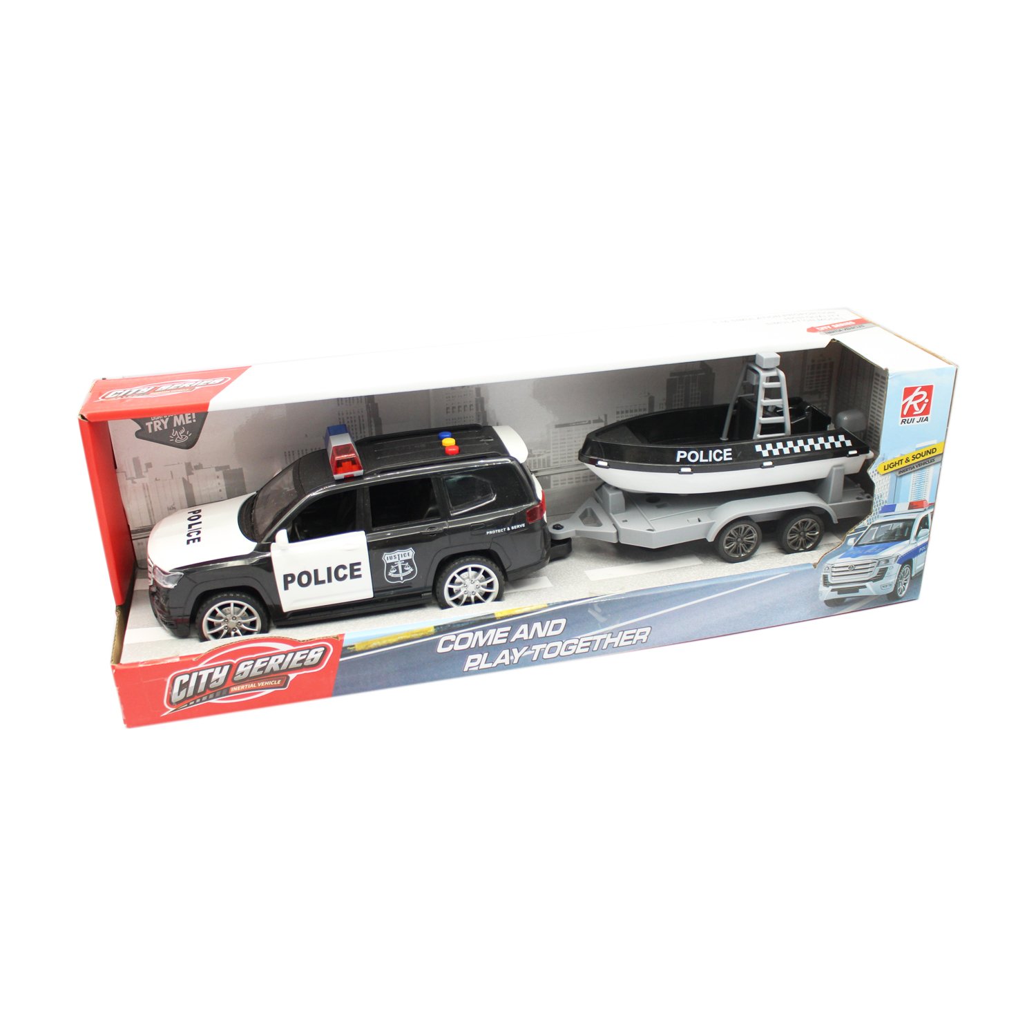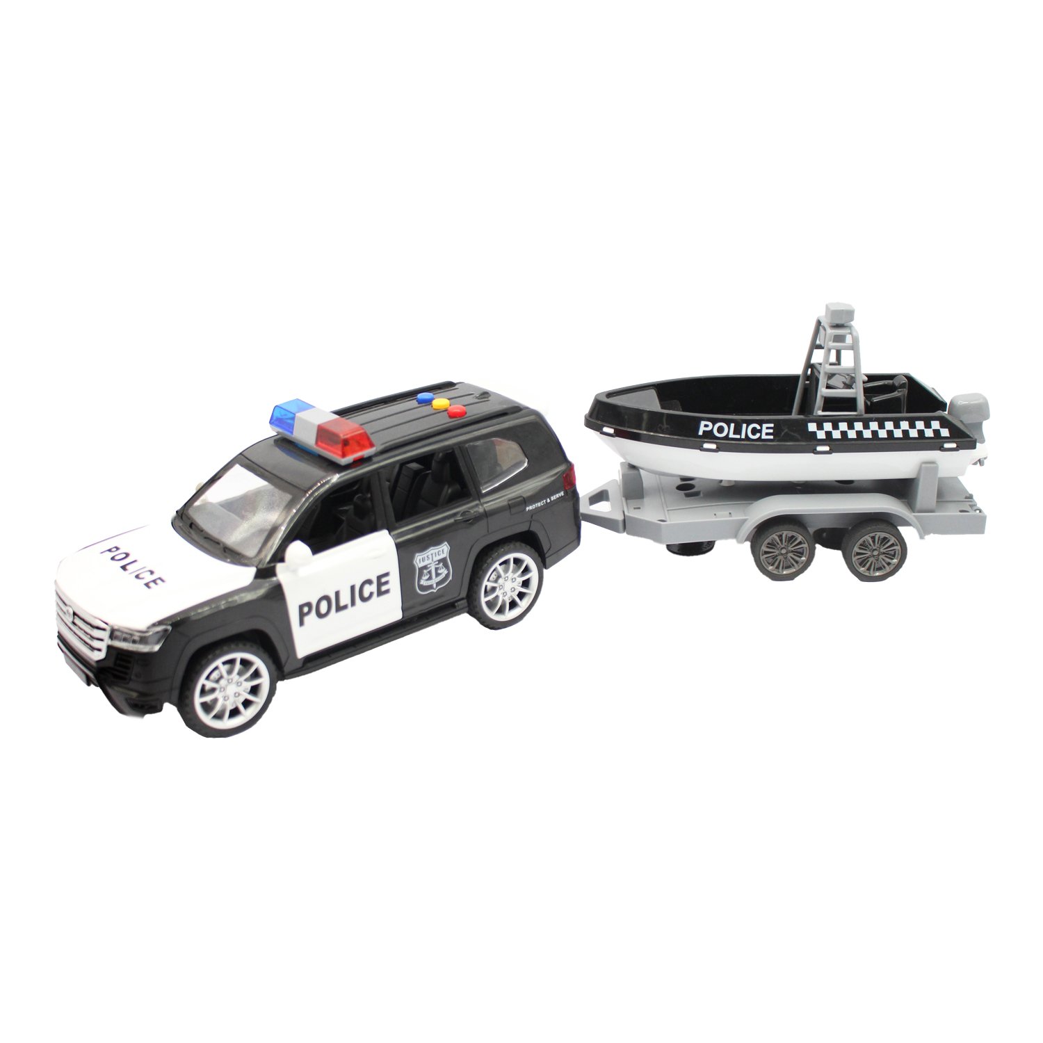 Vehículo policial, con yate, con luces y sonido, piezas pequeñas, a fricción