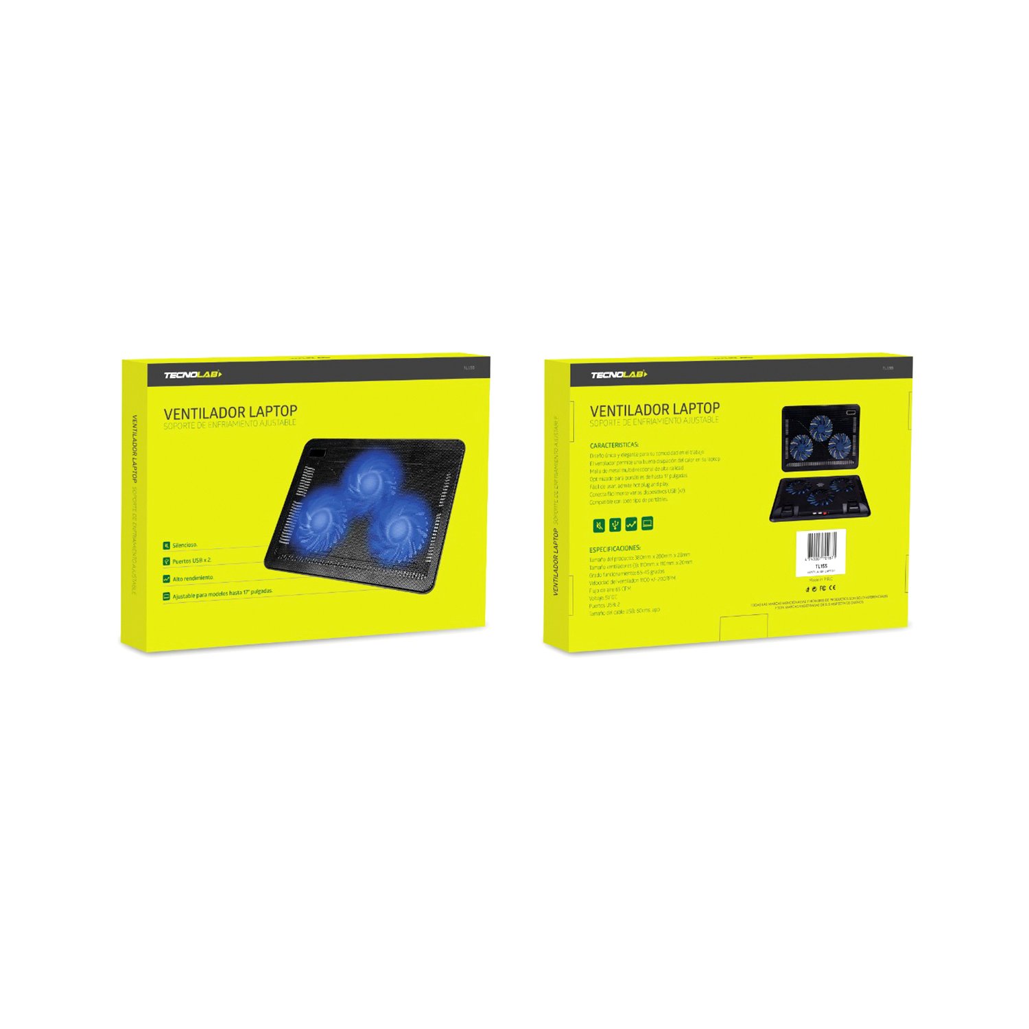 3 ventiladores de 110 mm, 2 puertos USB, flujo 65 CFM, voltaje 5V DC, cable USB 60 cm