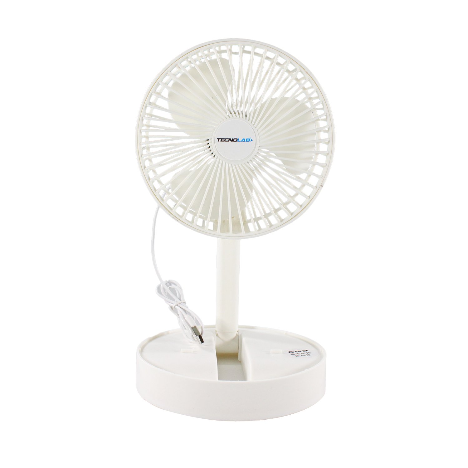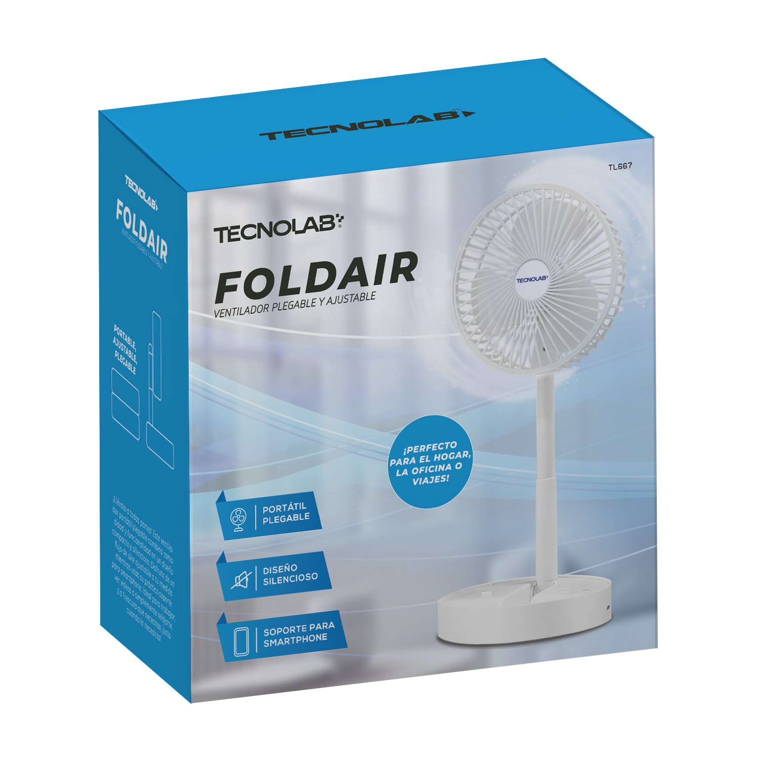 VENTILADOR TECNOLAB PLEGABLE PORTATIL, FLUJO DE AIRE AJUSTABLE, DC 5V, 5W, DISEÑO SILENCIOSO, SOPORTE SMARTPHONE.WHITE