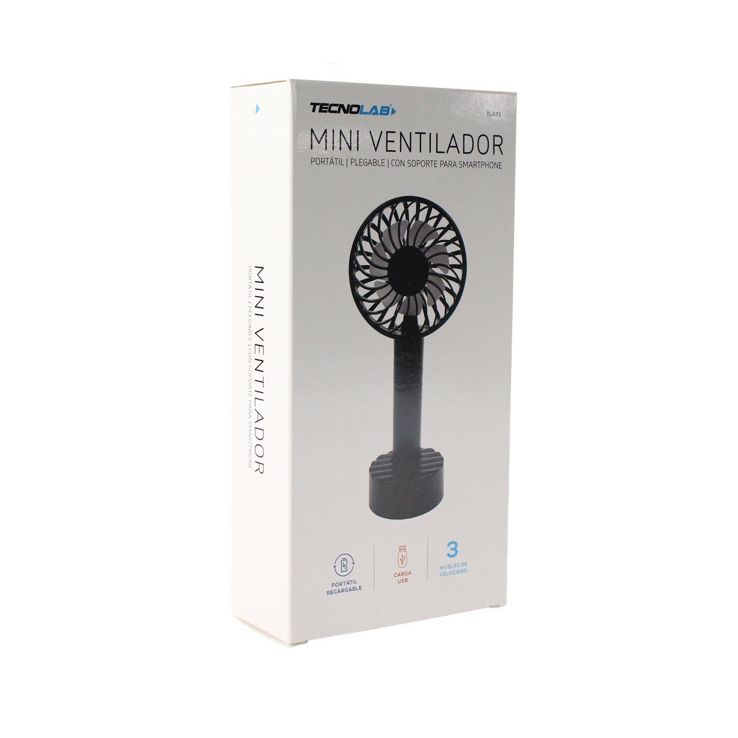Ventilador Tecnolab portátil recargable soporte SmartPhone